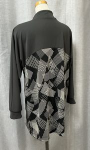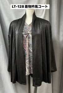 ご高齢のお母様はお友達が多くランチ会も度々です 会員さんはその日のためにお洋服をたくさん作られてプレゼントされています 中でもクロスタックTシャツがお気に入りで 今回は着物衿風コートの丈をカットしカーディガンにしセットアップされました 黒地にシルバーラメの華やかな生地のカーディガンはとても喜ばれたそうです