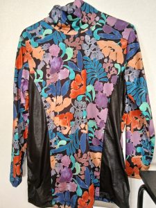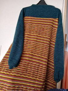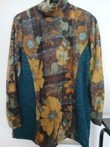 これは1月のパネル切替オフタートルです。無地との切替が少しスリムに見えるような気がしますが、気のせいかも・・・。派手目の生地を選んでみました。