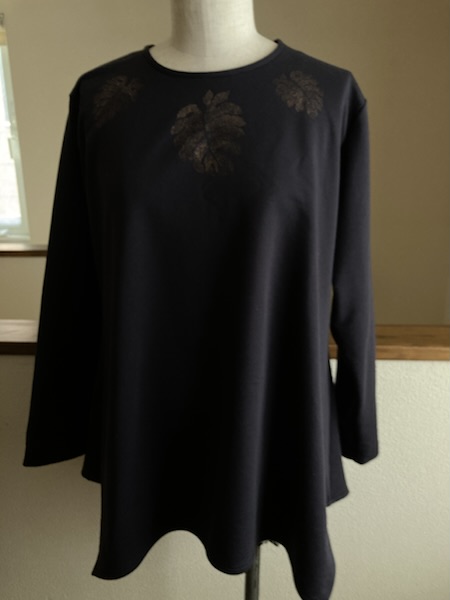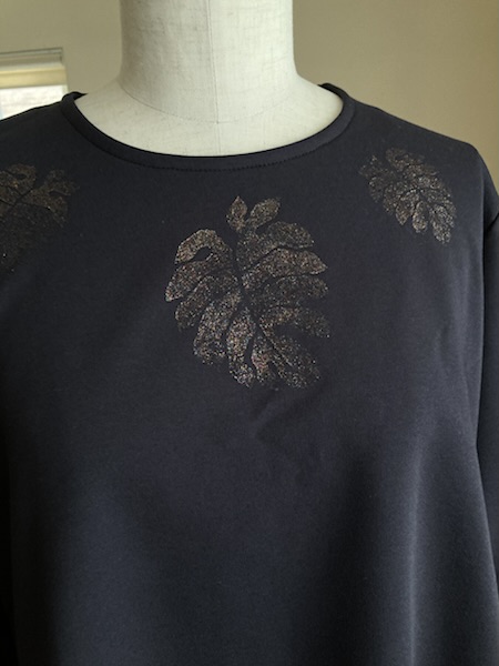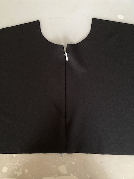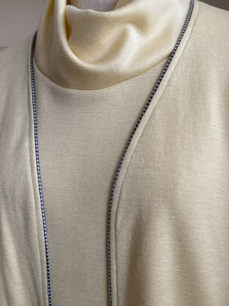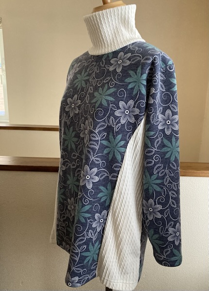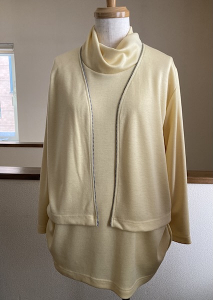 見頃に使った生地がテンションが低いので、衿はテンションの高めの生地を使い、切替部分も同じ生地で作りました😊