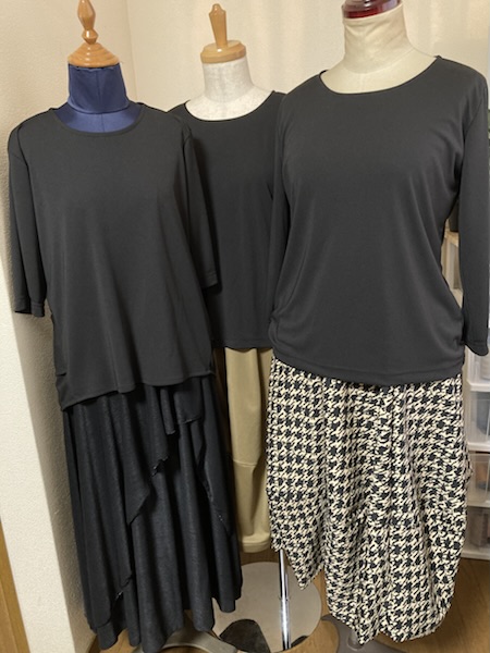 柄物生地ではカジュアルな感じで、無地のトリアセテートの生地では、少し高級な感じがします🙋♀️