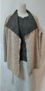 2着目は、巻ロックコートです😊オーバーサイズの衿を、巻ロックでしあげてます。見るより簡単に出来ますよ🎵