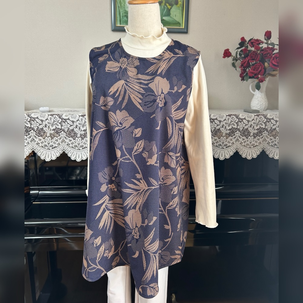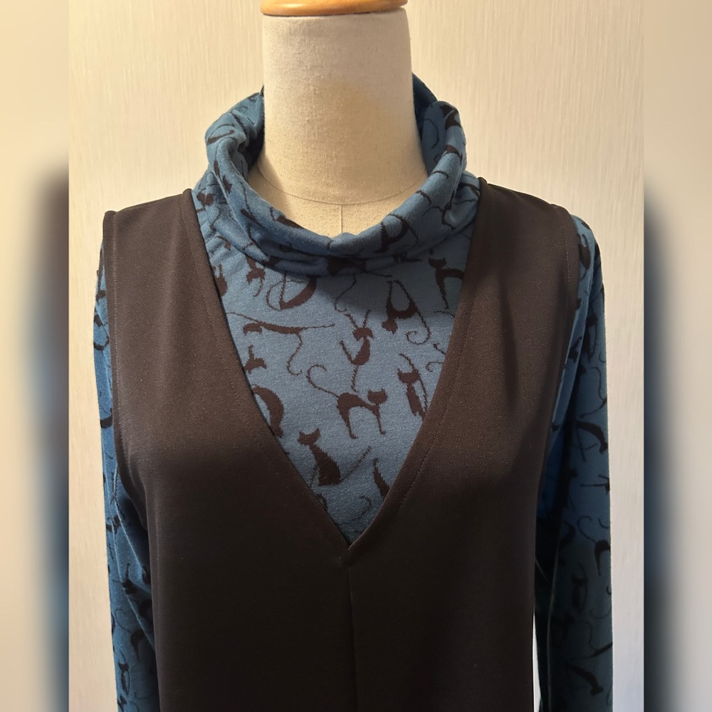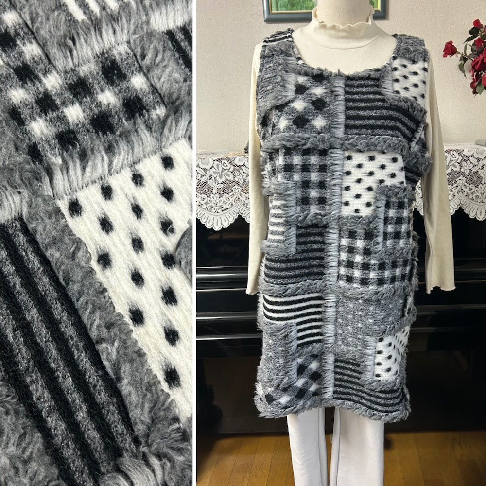 もこもこかわいいパッチワークジャカード生地で、長め丈のベストパターンLT-857のポケット付ベストのポケットなしバージョンを作ってみました!