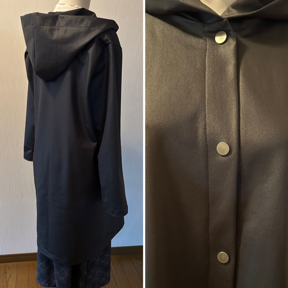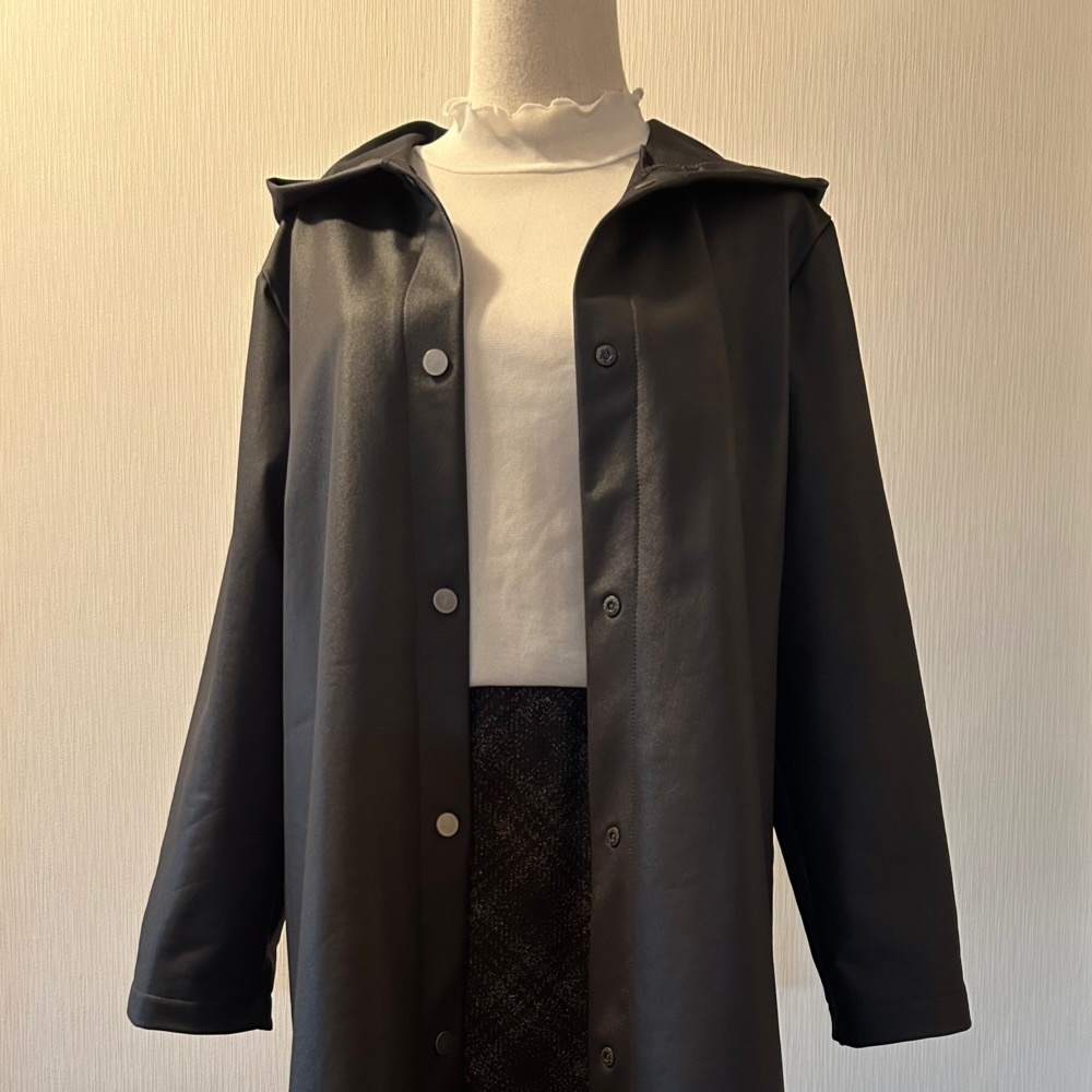 フード付のシルプルなコートです😊サンプルのボタンは15㎜のメタルスナップを使用しました!