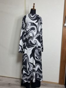 このパターンは胸元に切り替えがあるので、黒の無地と合わせようかなともおもったんですが…