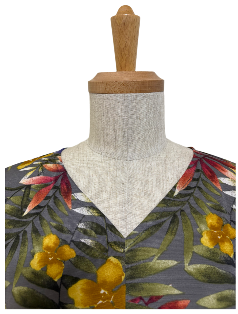 綺麗にV衿ができて丸衿より広いから頭部がすっぽり👍
