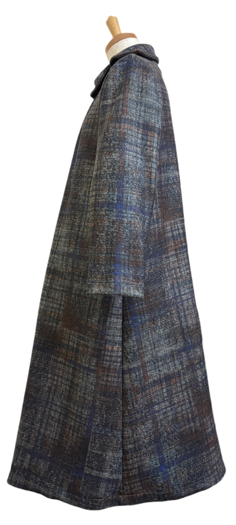 バストに前見頃が取られるので😨前下がりに裁断しました🤔着丈が70cmもあると脇にポケットが欲しくなりますね🫢