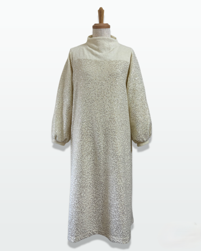 LO-355 ヨークとカフスは生地を裏返して作りました😉ボトルネックの丈は低めだけど着丈115cm全体バランスは👍