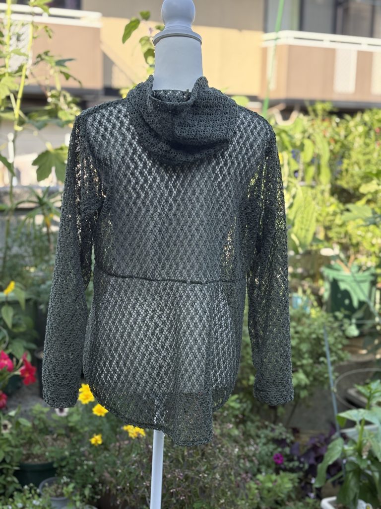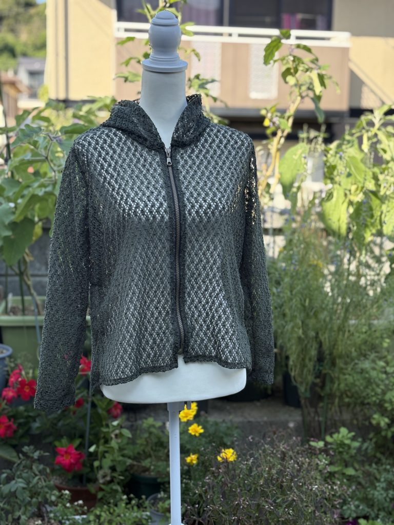 柄ではないのでウーリー糸、ワインレッドを使ってアクセントにしました。