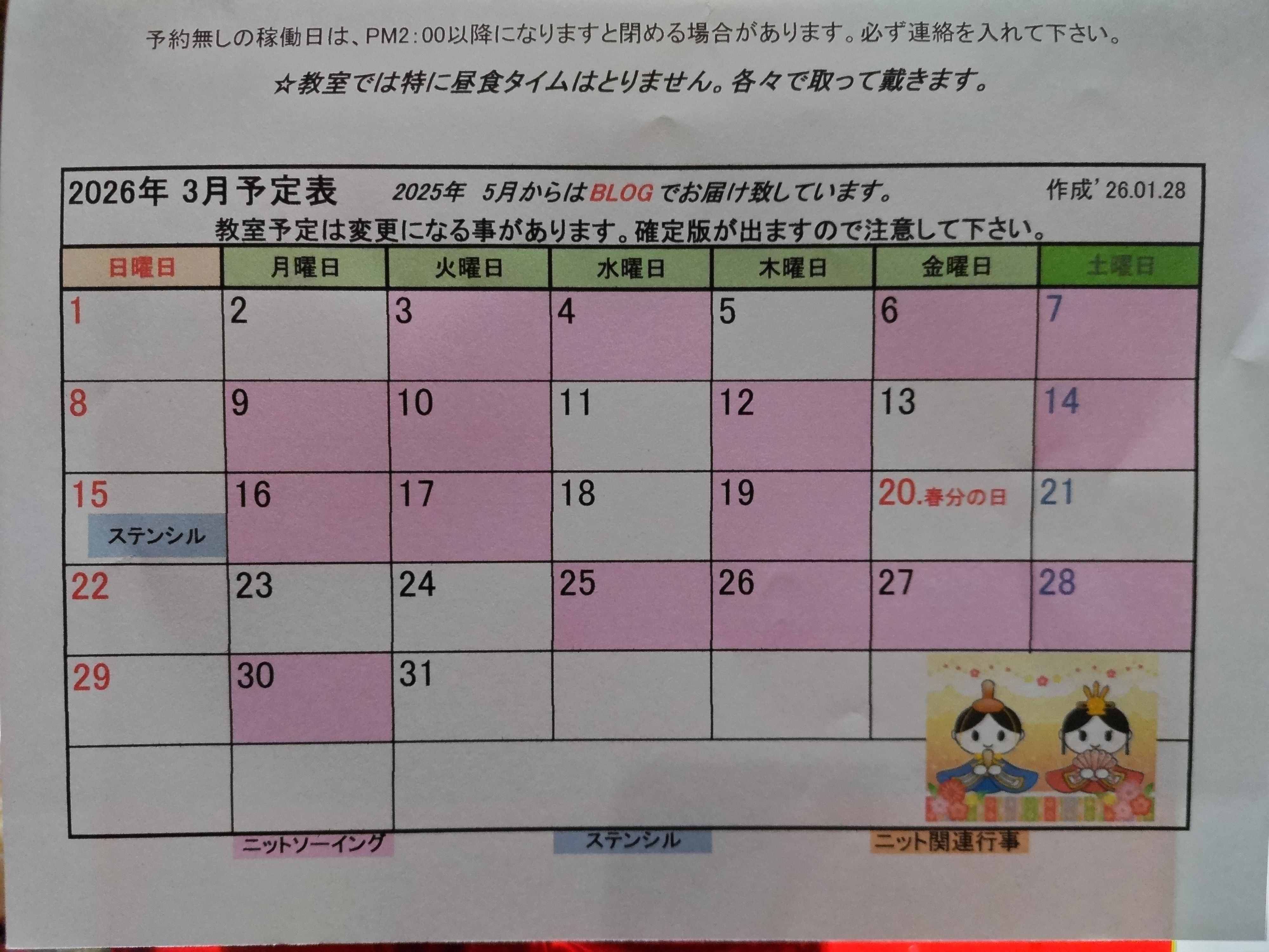 2026/ 03月 教室予定表