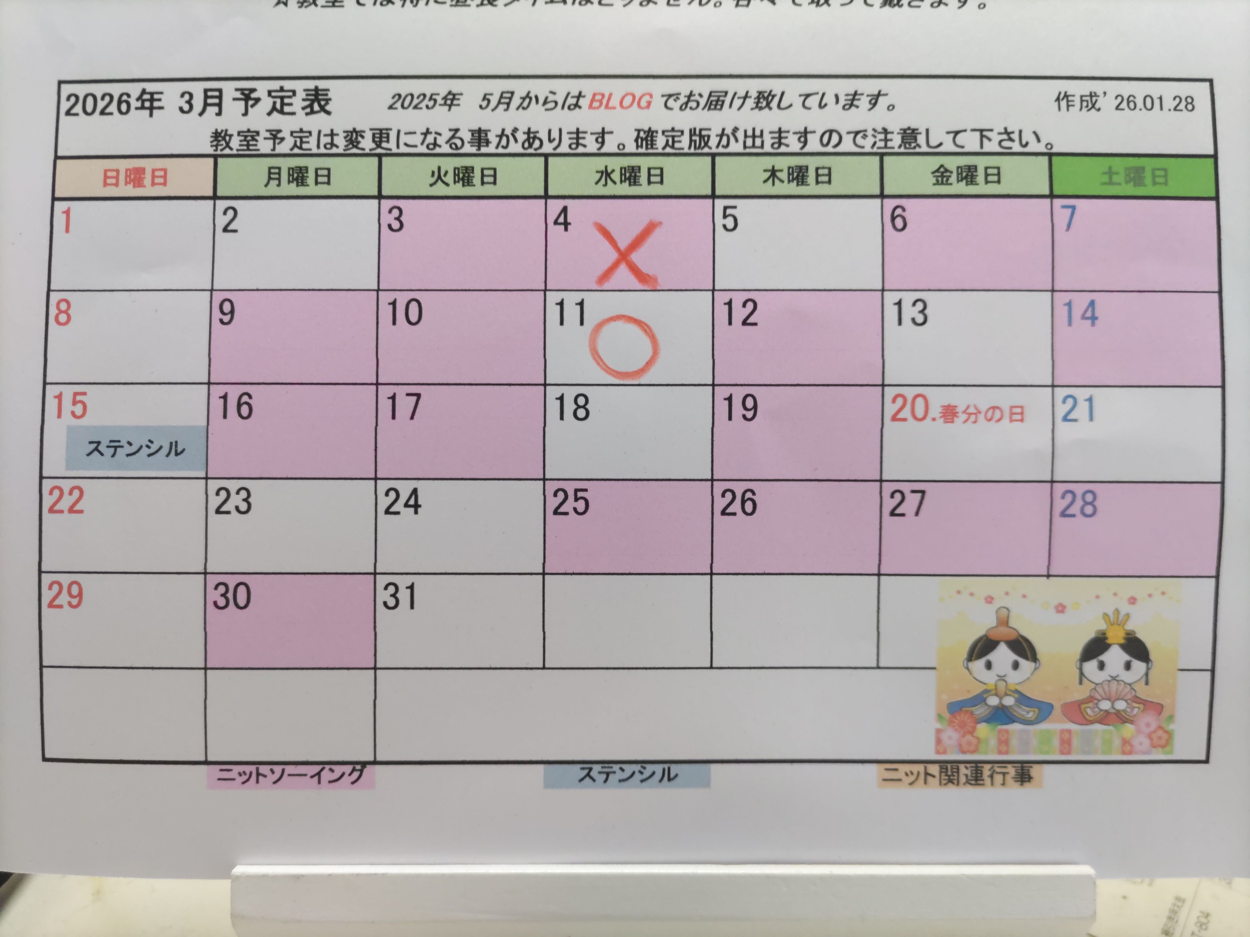 ・✿・3月教室予定に変更が出ました